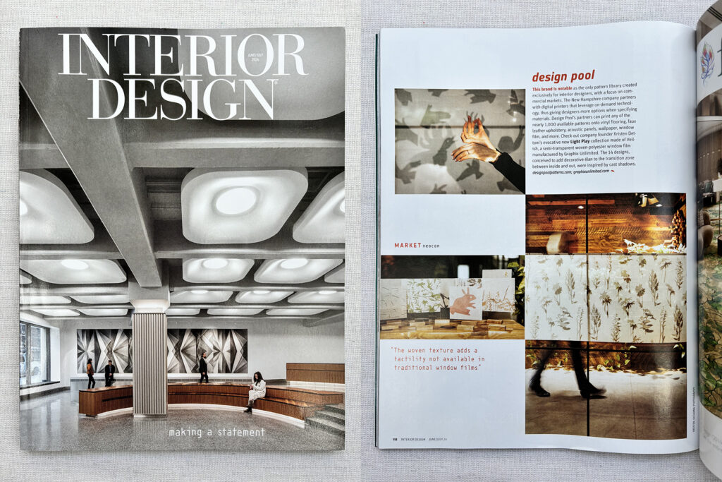 It has always been a dream and a goal of Kristen’s to be published in Interior Design Magazine. This year we were so excited to have that dream realized in the June/July issue. The full page feature highlighted our Light Play collection which debuted at NeoCon.
