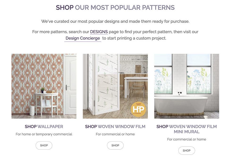 When Design Pool launched, Kristen always knew that one day she wanted to add the option to shop directly from the site. This year that finally happened with the launch of Shop Direct. Shop our most popular patterns on window film and peel-and-stick wallpaper.