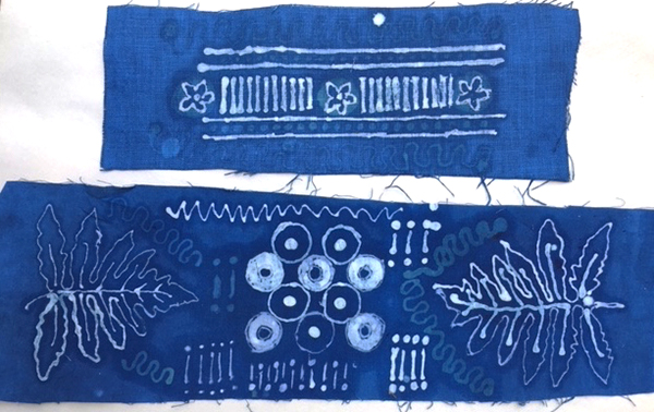 Rather than use wax to create the resist, another technique is to use some type of paste resist. Paste as a resist is used widely in various countries throughout Africa in stunning textiles. Bogolanfini, often referred to as mud cloth, is an excellent example produced by artists in Mali. These fabrics use an iron-rich clay collected from riverbeds and fermented to create the resist.