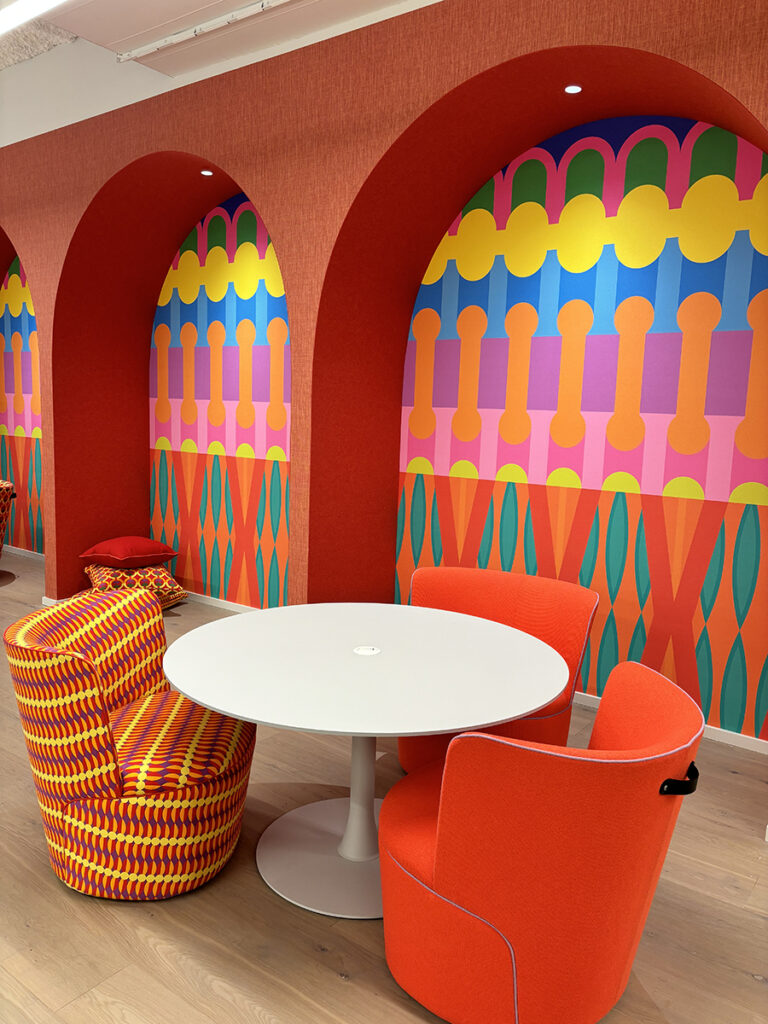 Something interesting in many of the showrooms and collections was that companies were thinking about color on a personal level. There was a lot of consideration into the science of how color makes one feel and respond. The most obvious example of this was Momentum’s Yinka Ilori collection. This collection was all about “Color You Can Feel.” The collection was fun and joyful. Just walking through the showroom made you feel good.