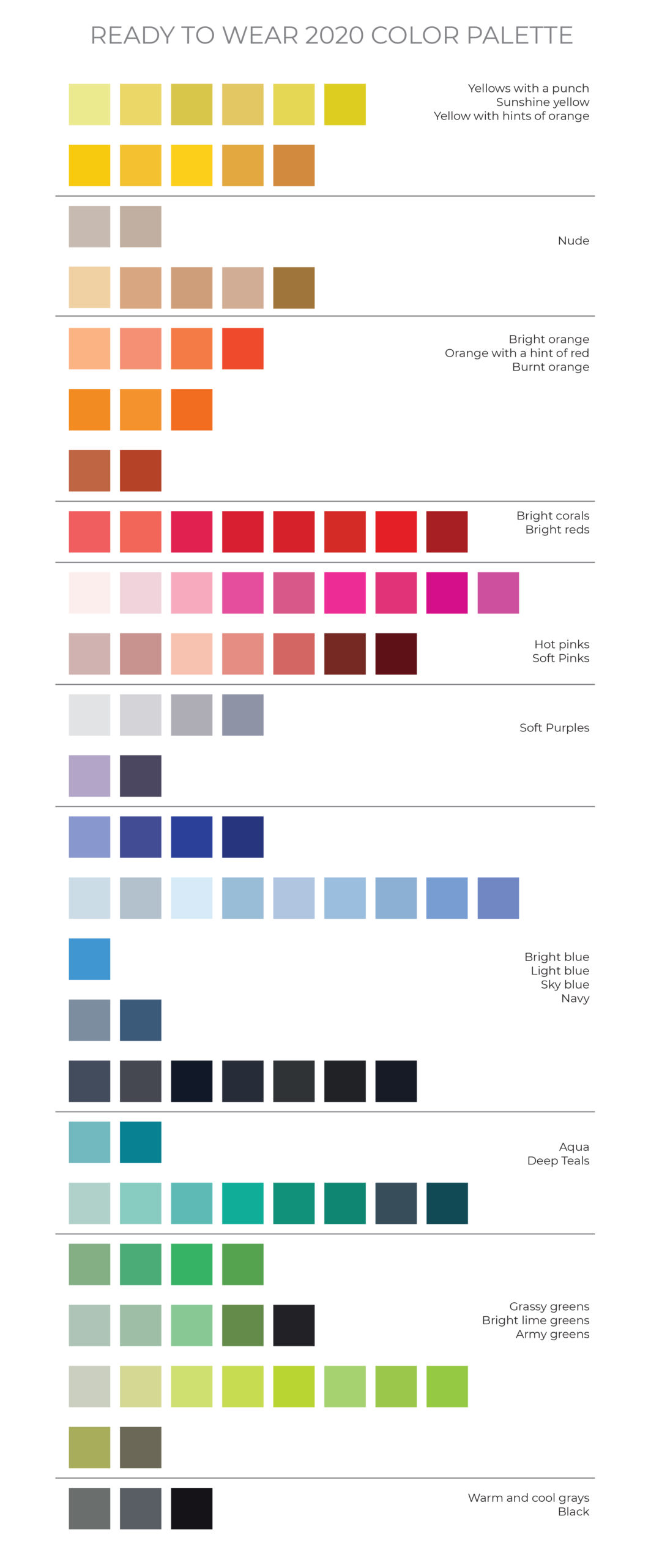 At Design Pool, we love tracking trends, and color is one of our favorite trends to track. Color is such an integral part of our day to day business and color trends are constantly providing direction and inspiration to our designers as they color designs for the market’s end-use. Over the years, we have learned that most color trends begin their life cycle on the runways of major fashion houses and by the color experts at companies such as Pantone. Paint companies such as Behr and Sherwin Williams also weigh in with their trend predictions, as well as organizations such as Color Marketing. Yet, there is something extra special about watching the newest runway collections; seeing the next new colors in motion. That’s why we’re turning our eye to the 2020 spring runway shows to see what colors are showing up.