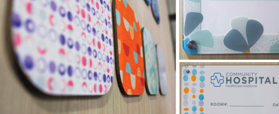 However, no two hospitals are the same. Being able to customize a whiteboard for the specific needs of a healthcare facility has been a huge advantage. For VividBoard, customization is at the core of what they do. They work directly with their healthcare customers to design a tailored communication solution for their specific needs. With our expertise in healthcare colors, trends, and pattern design, we have been able to work closely with VividBoard to expand their design offerings. According to Senior Marketing Manager Susan Claus, “We’re excited to be able to complement interior spaces of healthcare facilities with Design Pool designs. Their expertise in healthcare colors and pattern design is the perfect addition to our custom communication boards”