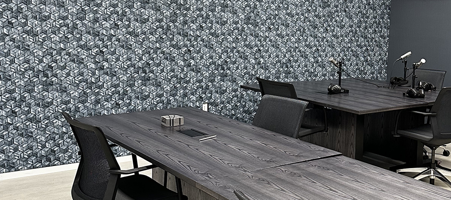 Thank you so much to the team at FabriTrak for sending us photos of this finished project! FabriTrak Systems Inc. recently worked with a law firm to help them redesign their podcast studio to make it more visually exciting and, most importantly, quieter.
