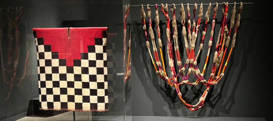 The exhibition notes explain, “Each of the four modern artists featured developed innovative approaches to an ancient medium through deep study of Andean techniques. Shown together, these ancient and modern weavings reposition the place of textiles in global art history.” Viewers can enter the long, rectangular gallery from either end, starting with either the ancient textiles or the modern. Yet, the moment where they meet, the two categories of work blend and viewers are left wondering which is ancient and which is modern.