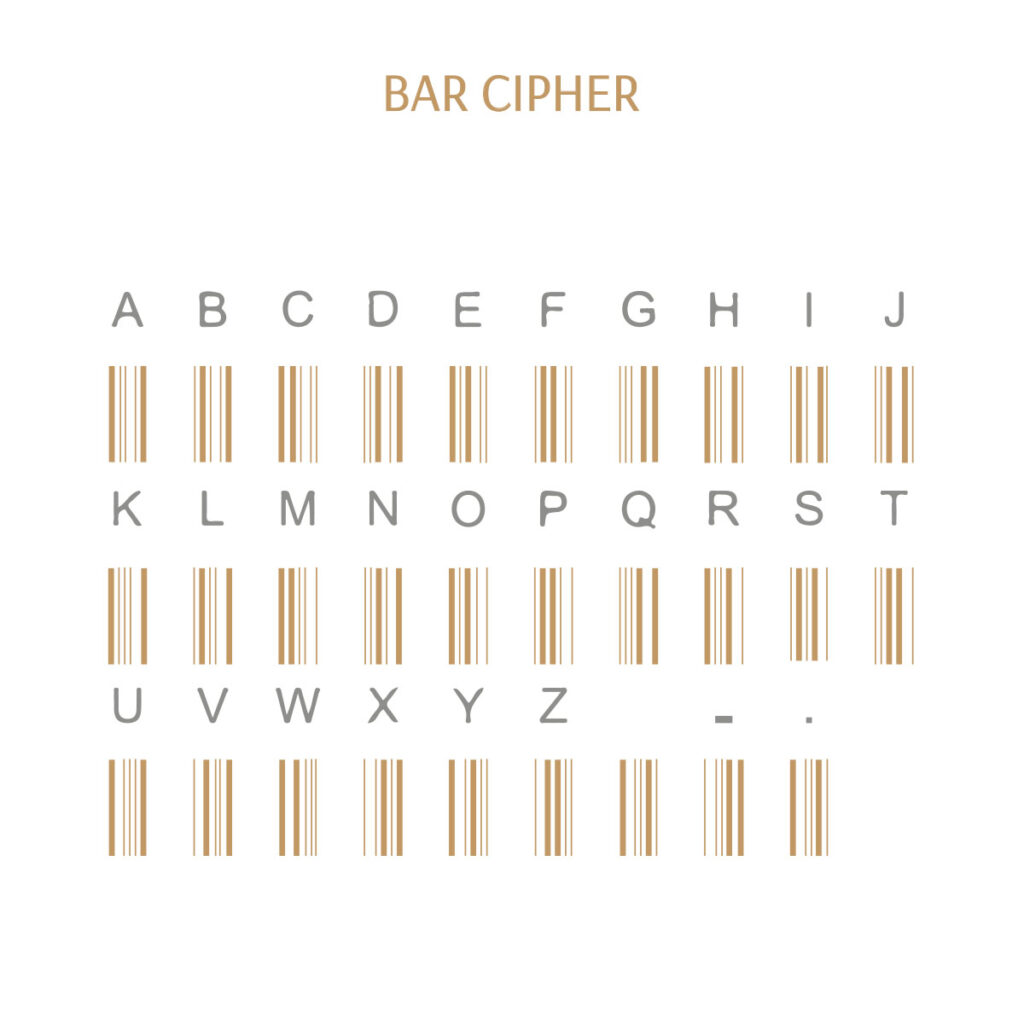 A Bar Code Cipher exchanges letters for a combination of two different size stripes.