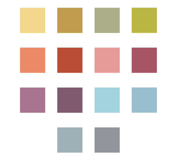Next, we saw a wide range of softer, toned down shades. Yet, that doesn’t mean boring or muted. There were rich pastels that were still very saturated. We also noticed a range of hues that we’re thinking of as colored neutrals. These colors coordinate well with a wide range of colors, even sometimes with the richer jewel tones.