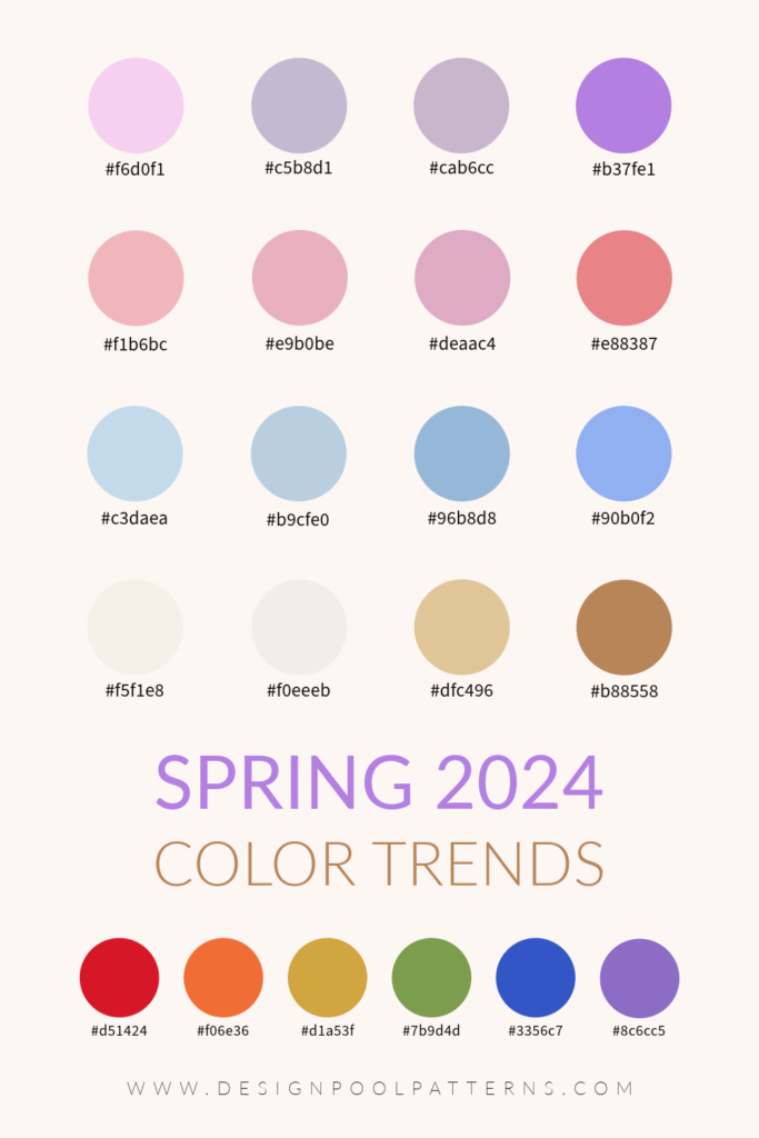 As always, we created a free color card for you to download, highlighting the spring 2024 color trends. Print it out and tack it in your studio for easy reference. You can also visit our Pinterest board to see highlights from the various collections.
