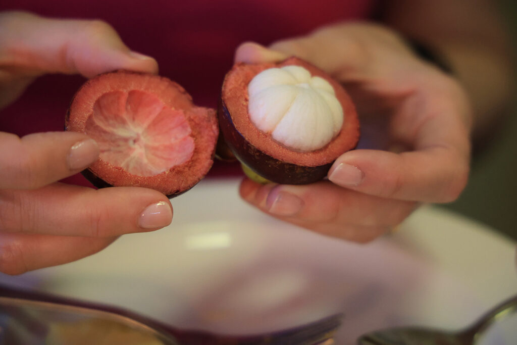 Tropical fruits always tastes better at their source. Mangosteens are a favorite of mine and very difficult to find in New England, especially super fresh ones. They taste like nothing else, and I can almost smell them when I see our Cross Hatch Mangosteen pattern.
